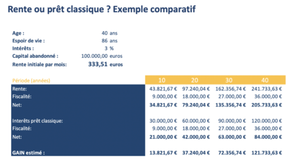 - Si vous optez pour une rente, récupérer le capital cédé à votre société en échange de cette rente n’est pas possible, contrairement à un prêt classique.