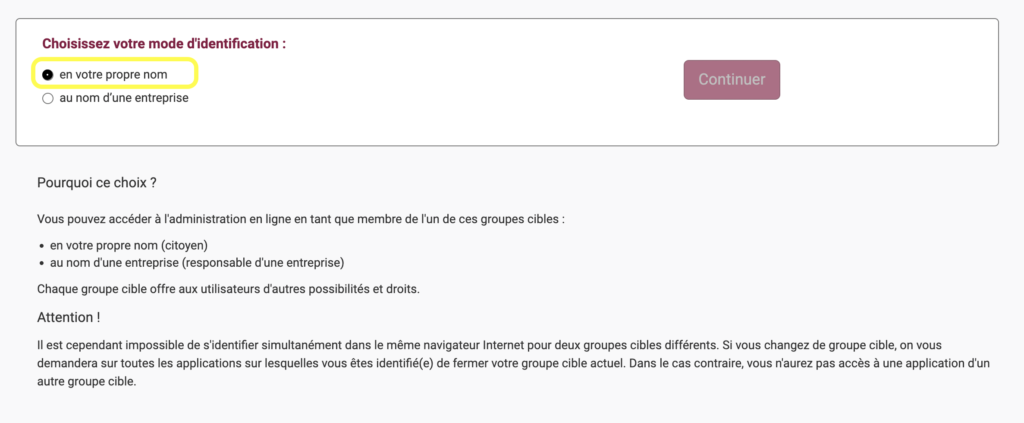 1. Rendez-vous sur la page d’identification à l’administration en ligne