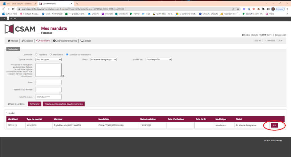 5. Cliquez sur « Voir » le mandat que vous voulez signer