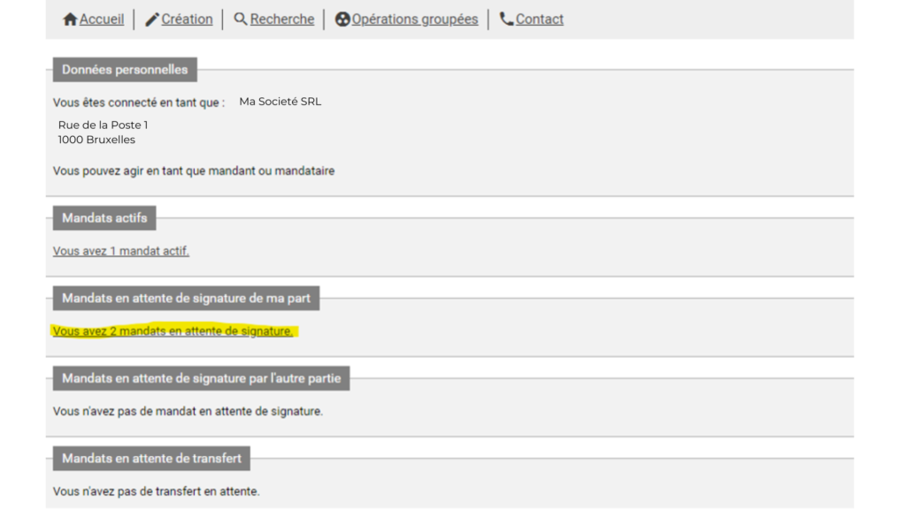 4. Cliquez sur vos mandats en attente de signature
