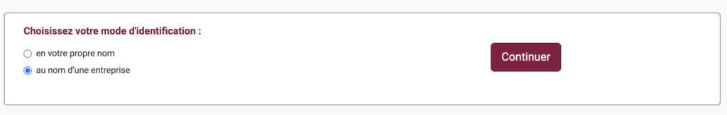3. Saisissez ‘au nom d’une entreprise’